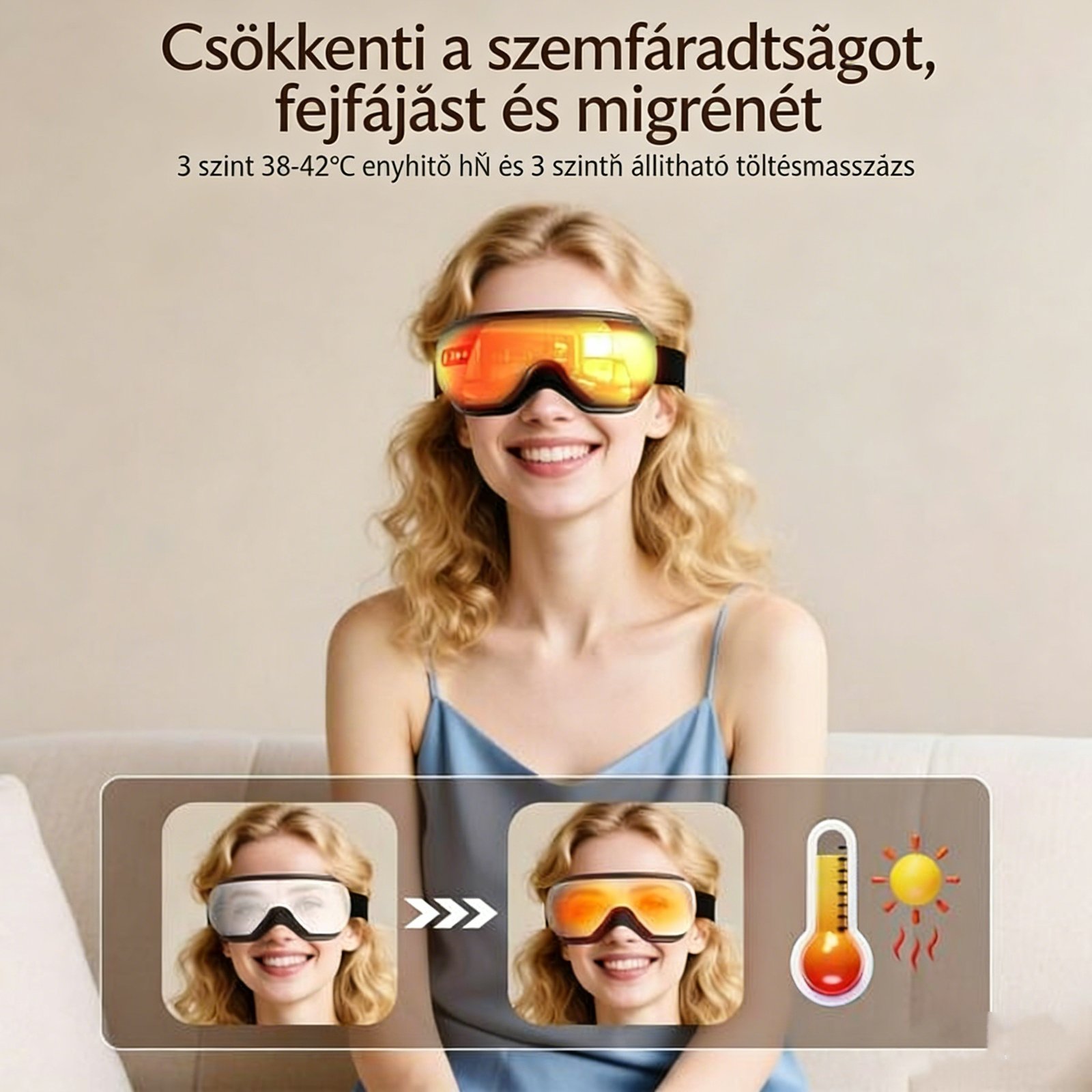 ?sszess¨¦g¨¦ben 5 csillagot adok, mindenki sz¨¢m¨¢ra aj¨¢nlom ezt a f?t¨¦ses ¨¦s l¨¦gp¨¢rn¨¢s szemmassz¨¢zsberendez¨¦set ¨C aki naponta sok id?t t?lt k¨¦perny? el?tt, nem fog csal¨®dni!